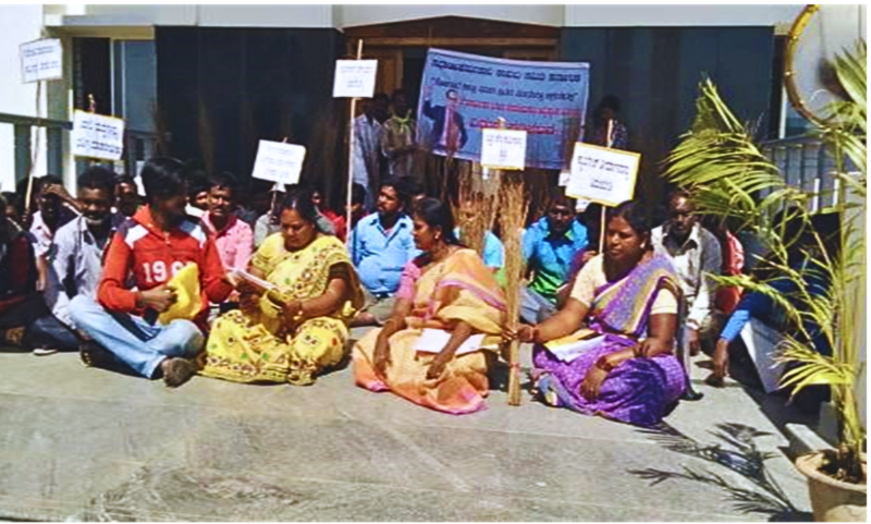 ಗುತ್ತಿಗೆ ಕೊನೆಗೊಳಿಸಲು ಬಿಬಿಎಂಪಿ ಗುತ್ತಿಗೆ ಪೌರಕಾರ್ಮಿಕರ ಸಂಘವು ನಡೆಸಿದ ಹೋರಾಟ
